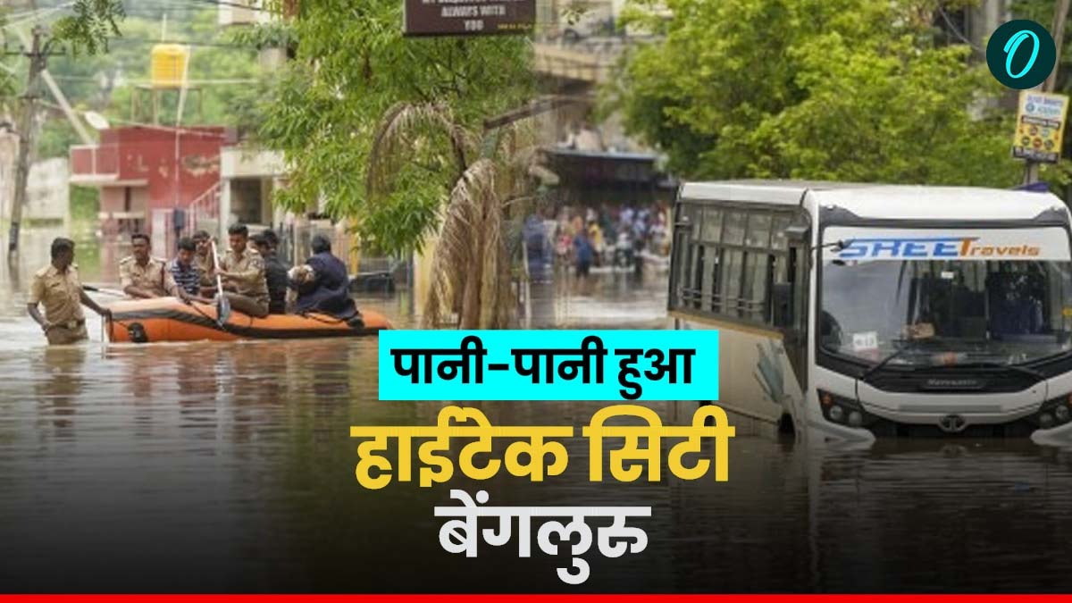मूसलाधार बारिश के बाद बेंगलुरु में जगह-जगह भरा पानी, झील में तब्दील हुई सड़कों पर चल रही बोट
