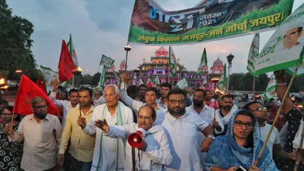 नई दिल्ली, 26 सितंबर: तीन केंद्रीय कृषि कानूनों के विरोध में सोमवार यानी 27 सितंबर को संयुक्त किसान मोर्चा (एसकेएम) के नेतृत्व में देशभर के 40 किसान संगठनों ने "भारत बंद" का आह्वान किया है। कृषि कानूनों के विरोध में 27 सितंबर को किसानों द्वारा भारत बंद यानी देशव्यापी हड़ताल की घोषणा की गई है। किसानों के इस भारत बंद को कई राजनीतिक पार्टियों का समर्थन मिला है। तीन केंद्रीय कृषि कानूनों के विरोध में 27 सितंबर को किसानों द्वारा घोषित भारत बंद या देशव्यापी हड़ताल को कई राजनीतिक दलों का समर्थन मिला है। सोमवार को होने वाले इस भारत बंद का नेतृत्व संयुक्त किसान मोर्चा (एसकेएम) द्वारा किया जाएगा।