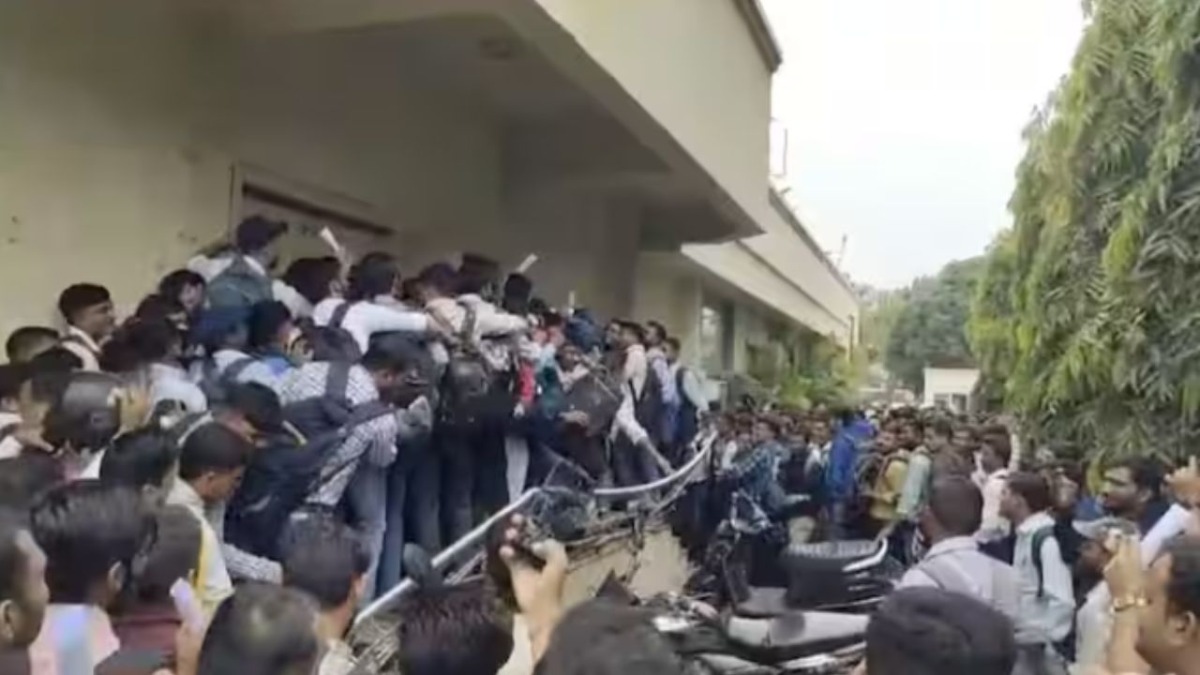 Viral Video: वॉक-इन-इंटरव्यू के दौरान बनी भगदड़ जैसी स्थिति, रेलिंग टूटने से नीचे गिरते दिखे आवेदक
