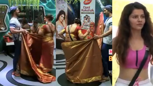 BB14: अभिनव शुक्ला के हाथों साड़ी पहनने की जिद पर अड़ी राखी सावंत, रुबीना दिलैक का ऐसा था रिएक्शन