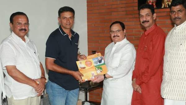 'संपर्क से समर्थन' कैंपेन के तहत बेंगलुरु में राहुल द्रविड़ से मिले जेपी नड्डा