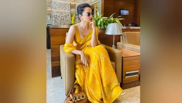 येलो साड़ी, डीप नेक ब्लाउस में कंगना रनौत का दिखा ग्लैमरस लुक,