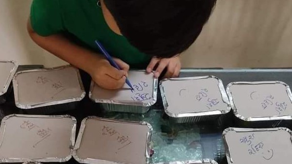 बताया जा रहा है कि लड़के की मां कोरोना मरीजों को अस्पताल में देने के लिए खाना बनाती हैं और उसे पैक करती हैं। बच्चा हर डब्बे पर 'खुश रहिए' लिख देता है। तस्वीर में देखा जा सकता है कि उसके बगल में मेज पर कई खाने के डिब्बे हैं, जिनमें से प्रत्येक में हिंदी में दो शब्द हैं, जिसके बाद एक स्माइली चेहरा भी बना है। इस मुश्किल वक्त में यह तस्वीर लोगों को उम्मीद देने के साथ-साथ उनके चेहरे पर खुशी की मुस्कान भी बिखेर रही है। तस्वीर सोशल मीडिया पर वायरल हुई तो लोग इस बच्चे को 'नन्हा फरिश्ता कर रहे हैं।