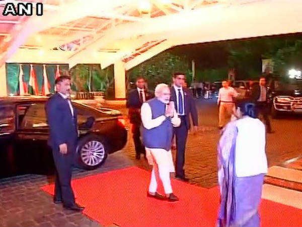 ब्रिक्स सम्मेलन 2016 के लिए गोवा पहुंचे प्रधानमंत्री नरेंद्र मोदी, सुषमा स्वराज ने किया स्वागत