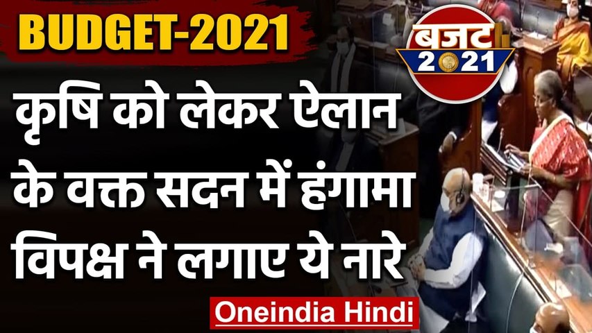 BUDGET-2021: कृषि संबंधित घोषणाओं के समय विपक्ष ने लगाए "काले कानून वापस लो" के नारे