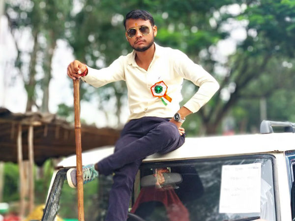 उसके घर के बाहर लगे हुए पोस्टर में लिखा हैः 'अखंड भारतः कब कब भारत बंटा.' और इसके बीच में हिंदू देवी की एक तस्वीर लगी हुई है तो वहीं गांव वालों के मुताबिक वो केवल हिंदू लोगों से ही बात करता है, उसके पास बंदूक भी है और वो अक्सर रैलियों में बंदूक के साथ देखा जाता है।