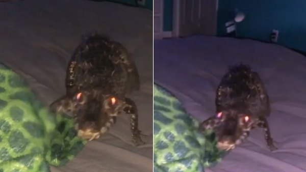 VIDEO: रात को अचानक बिस्तर पर जा चढ़ा मगरमच्छ का बच्चा, महिला ने जो किया वो देखने लायक