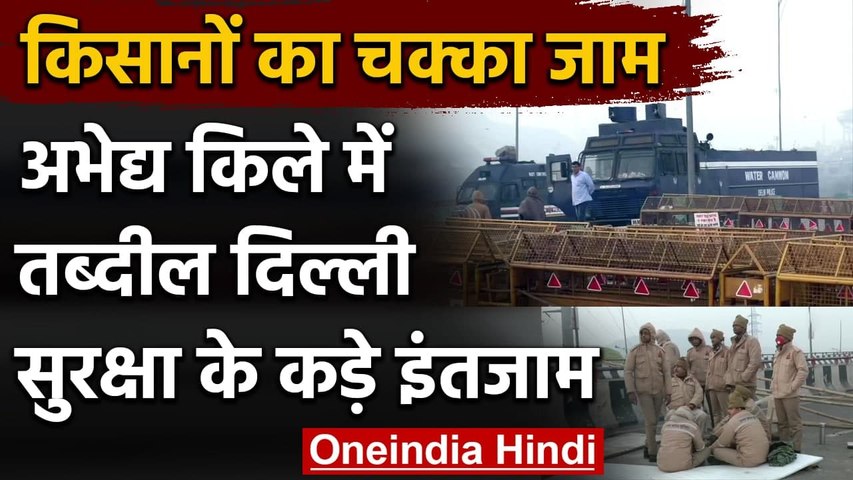 न्यूज एजेंसी एएनआई ने लाल किला, आईटीओ, इंडिया गेट, राजपथ, विजय चौक, संसद भवन सहित कई इलाकों के सुरक्षा व्यवस्था की तस्वीरें साझा की हैं। सिंघु बॉर्डर, गाजीपुर बॉर्डर और टीकरी बॉर्डर पर कंटीले तार वाले बैरिकेड लगाए गए हैं। इसके अलावा सिंघु बॉर्डर और गाजीपुर बॉर्डर पर वाटर कैनन वाहन को भी तैनात किया गया है।