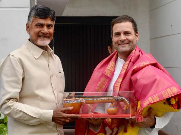 नई दिल्ली। आंध्र प्रदेश के मुख्यमंत्री चंद्रबाबू नायडू ने गुरुवार को कांग्रेस अध्यक्ष राहुल गांधी से मुलाकात की है। नायडू के साथ उनकी पार्टी टीडीपी के सांसद जयदेव गल्ला, सीएम रमेश और दूसरे नेताओं ने भी गांधी से मुलाकात की। चंद्रबाबू नायडू की ये मुलाकात 2019 के लोकसभा चुनाव में भाजपा के खिलाफ विपक्ष को एकजुट करने की कोशिश के तहत है। नायडू इसके लिए लगातार विपक्ष के नेताओं से मिल रहे हैं।