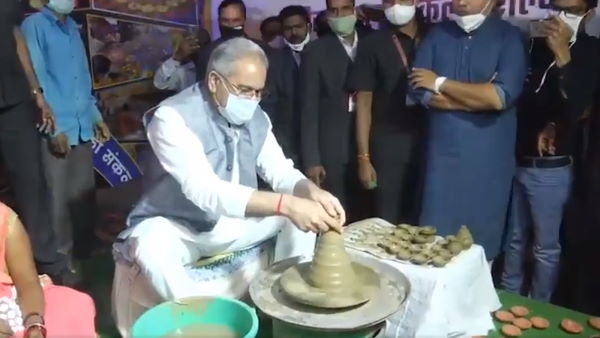 VIDEO: दिवाली के 'दिये' बनाते दिखे सीएम भूपेश बघेल, कांग्रेस ने लिखा-गढ़बो नवा मरवाही
