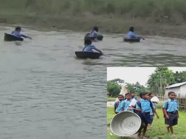 एल्युमिनियम के बर्तनों में बैठकर नदी पार करके प्राइमरी स्कूल जाने का वीडियो असम के बिश्वनाथ जिले से सामने आया है। दरअसल, जहां पर सरकार ने यह स्कूल बनवाया है, वहां पहुंचने का कोई और रास्ता ही नहीं है। वीडियो सामने आने पर जब यहां के टीचर जे दास से बात की गई तो उन्होंने बताया कि इस क्षेत्र में नदी के ऊपर कोई ब्रिज नहीं है, जिसके चलते बच्चों को यह सब करना पड़ता है।