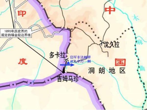 चीन की ओर से जारी किए गए नक्शे में कहा गया है कि भारतीय सेना ने डोका-ला पास के पास सीमा को पार किया है। इसके अलावा डोकलम पठार को भारत और भूटान दोनों ही भूटानी क्षेत्र मानते हैं। हालांकि चीन इस पर अपना दावा जताता रहा है। इंडिया टुडे में छपी खबर के मुताबिक चीन ने शुक्रवार को ये नक्शा जारी किया है जिसमें भारत और भूटान के बीच सीमावर्ती इलाकों पर अपना दावा जताया है। चीन ने नक्शे में नीले रंग के तीर से उस इलाके को दर्शाया है और दावा किया कि ये 1890 में ब्रिटिश-चीन संधि तहत आती है।