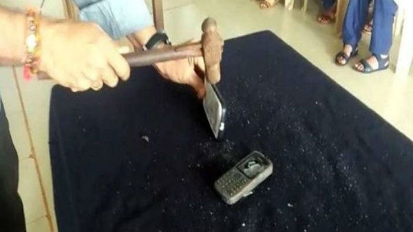 लेक्चर के वक्त मोबाइल में बिजी थे स्टूडेंट्स, प्रिंसिपल ने हथौड़े से कूच दिए 16 फोन