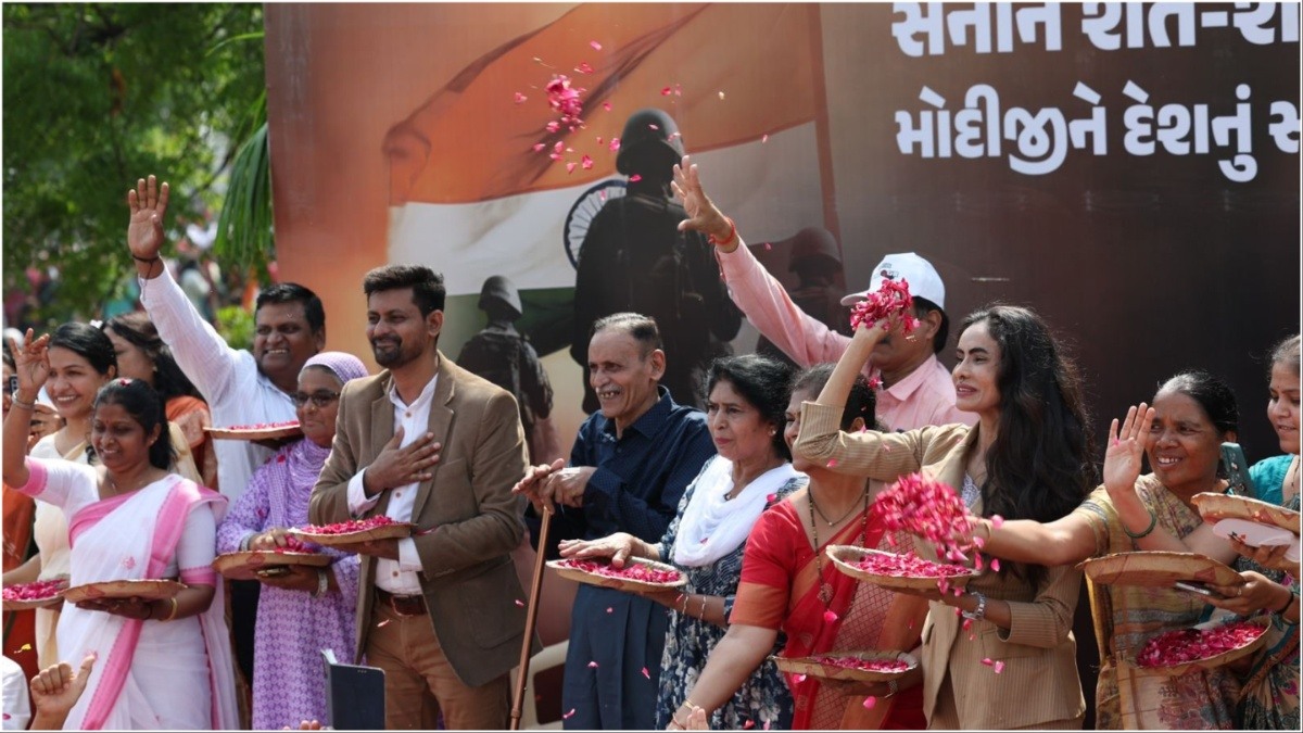 वडोदरा में पीएम मोदी के रोड शो पर कर्नल सोफिया कुरैशी की जुड़वां बहन शायना सुनसारा ने कहा, "पीएम मोदी से मिलकर हमें अच्छा लगा। पीएम मोदी ने महिला सशक्तिकरण के लिए बहुत कुछ किया है। सोफिया मेरी जुड़वां बहन है। जब आपकी बहन देश के लिए कुछ करती है, तो यह न केवल मुझे बल्कि दूसरों को भी प्रेरित करती है। वह अब सिर्फ मेरी बहन नहीं बल्कि देश की बहन भी है।''
