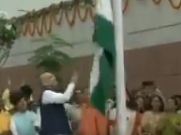 अमित शाह के झंडा फहराते हुए गिरा तिरंगा, कांग्रेस ने वीडियो शेयर कर साधा निशाना
