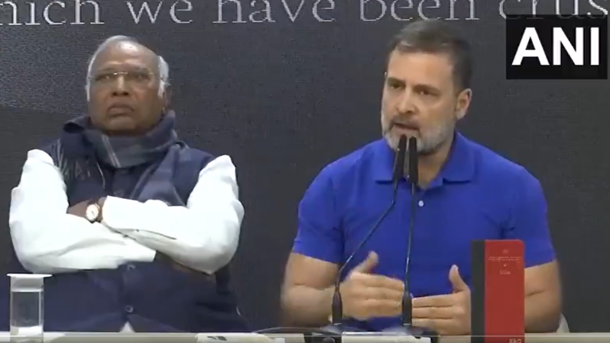 Rahul Gandhi News: धक्का-मुक्की कांड पर कांग्रेस और बीजेपी आमने सामने आ गए। एक तरफ जहां बीजेपी ने राहुल गांधी के खिलाफ शिकायत दर्ज कराई है। वहीं, राहुल गांधी और कांग्रेस अध्यक्ष मल्लिकार्जुन खड़गे ने प्रेस कॉन्फ्रेंस की। इस दौरान राहुल गांधी ने कहा, 'भाजपा और आरएसएस की सोच संविधान विरोधी, अंबेडकर विरोधी है।'