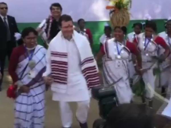 रांची। कांग्रेस अध्यक्ष राहुल गांधी शनिवार को रांची पहुंचे हुए हैं। जहां वे स्थानीय लोगों के साथ लोक नृत्य करते हुए भी नजर आए हैं। इसका वीडियो भी सामने आया है। जिसमें आप देख सते हैं कि राहुल गांधी किस तरह से वहां के स्थानीय लोगों के साथ पारंपरिक लोक नृत्य करते हुए नजर आ रहे हैं। रांची पुहंचे राहुल गांधी ने एक रैली को भी संबोधित किया और केंद्र की नरेंद्र मोदी सरकार पर जमकर निशाना भी साधा है।