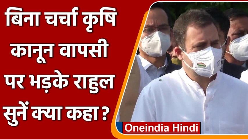 वहीं दोनों सदनों में बिना चर्चा के बिल पास करने पर राहुल गांधी ने कहा कि 'जिस तरह से संसद में बिना किसी चर्चा के कानून रद्द किए गए, ये दिखाता है कि सरकार चर्चा से डरती है। सरकार जानती है कि उन्होंने गलत काम किया है। 700 किसानों की मृत्यु, कानूनों को लागू करने के पीछे किसकी शक्ति थी। इस पर चर्चा होनी थी पर सरकार ने नहीं होने दी।