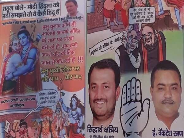 पोस्टर वार: हनुमान जी बोल रहे- 'चुनाव आते ही बीजेपी आपके नाम पर धोखा देती है प्रभु'