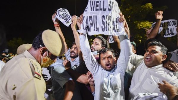 कपिल सिब्बल के खिलाफ कांग्रेस कार्यकर्ताओं ने ही खोला मोर्चा, घर के बाहर प्रदर्शन