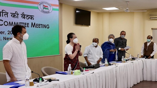 नई दिल्ली, 16 अक्टूबर: कांग्रेस कार्यसमिति (सीडब्ल्यूसी) की बैठक शनिवार को नई दिल्ली में पार्टी मुख्यालय में जारी है। कांग्रेस की अंतरिम अध्यक्ष सोनिया गांधी, पूर्व अध्यक्ष राहुल गांधी समेत पार्टी के 52 वरिष्ठ नेता मौजूद हैं। 18 महीनों से अधिक समय के बाद पहली बार कांग्रेस नेताओं की ये ऑफलाइन बैठक हो रही है। इस बैठक में अशोक गहलोत, चरणजीत सिंह चन्नी, भूपेश बघेल और गुलाम नबी आजाद, कपिल सिब्बल जैसे कांग्रेस नेता बैठक में हिस्सा ले रहे हैं। कांग्रेस कार्य समिति (सीडब्ल्यूसी), पार्टी की सर्वोच्च निर्णय लेने वाली संस्था है।
