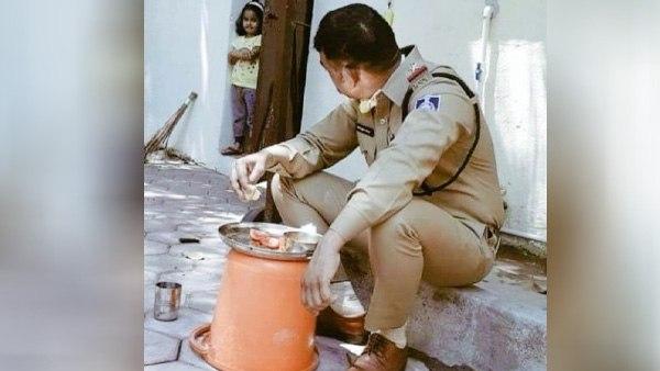 इंदौर के तुकोगंज में तैनात टीआई निर्मल श्रीवास पिछले दो दिनों से सोशल मीडिया पर प्रशंसा बटोर रहे हैं। लोग उन्हें हीरो की तरह सलाम कर रहे है। जो तस्वीर ट्विटर पर सामने आई है उसमें देखा जा सकता है कि टीआई श्रीवास अपने घर के बाहर बैठकर खाना खा रहे हैं। उल्टी बाल्टी पर रखी प्लेट पर खाना खत्म हो गया है और श्रीवास लगातार अपनी नन्हीं बेटी की तरफ देख रहे हैं। बेटी भी घर के दरवाजे पर खड़ी अपने पापा की तरफ हल्की मुस्कान से उन्हें निहार रही है।