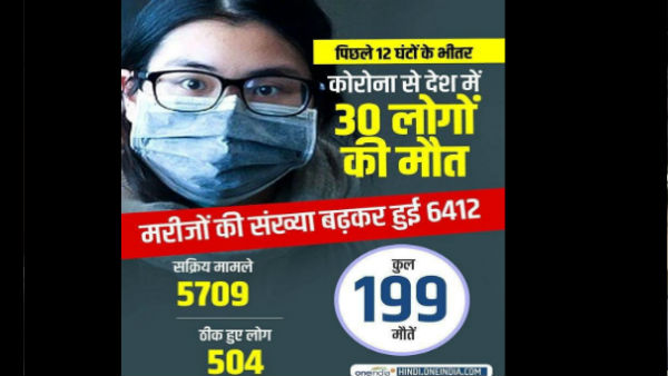नई दिल्ली। कोरोना वायरस ने देश में रफ्तार पकड़ ली है। पिछले 24 घंटे में कोरोना वायरस के संक्रमण मामले में तेजी से बढ़ोतरी हुई है। भारत में कोरोना वायरस से संक्रमित मरीजों की संख्या 6412 हो गई है, जबकि 199 लोगों की मौत हो चुकी है। वहीं इंडियन काउंसिल फॉर मेडिकल रिसर्च की रिपोर्ट ने भारत की टेंशन को और बढ़ा दिया है। ICMR ने अपनी रिपोर्ट में कहा है कि देशभर में कोरोना संक्रमण के मामले, उनकी केस हिस्ट्र्री के आधार पर जो आंकड़े सामने आए हैं, उससे कम्युनिटी ट्रांसमिशन का खतरा बढ़ गया है। अगर पिछले 24 घंटे की रिपोर्ट पर नजर डाले तो आंकड़े चौंकाने वाले हैं।