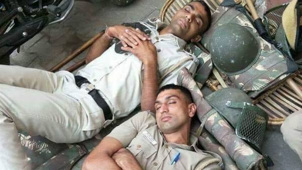 वायरल हुई जमीन पर सो रहे पुलिसकर्मियों की तस्वीर, कोरोना वॉरियर्स को लोगों ने किया सलाम