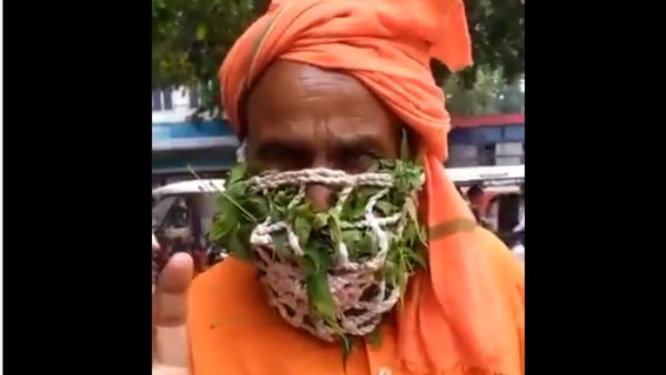 कोरोना संक्रमण से बचाव के लिए पहना नीम का मास्क, वीडियो वायरल