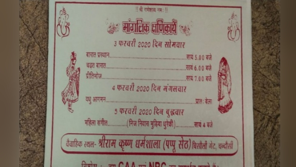 कपल ने अपनी शादी के कार्ड में लिखवाया- 'CAA-NRC का समर्थन करते हैं', हुआ वायरल