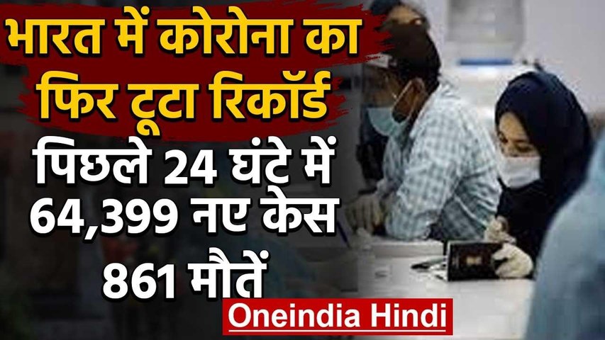 कोरोना का तांडव जारी, मरीजों का आंकड़ा 21 लाख के पार, 24 घंटे में 64,399 नए केस और 861 मौतें