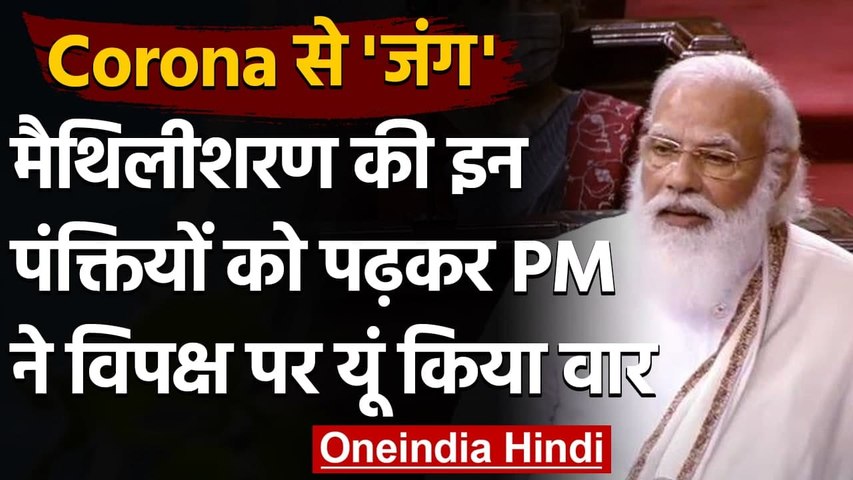Credit To India, Not Any Government For Win In Coroanvirus Fight said PM Modi in Rajya Sabha: नई दिल्ली। पीएम मोदी आज सदन में राष्ट्रपति रामनाथ कोविंद के अभिभाषण पर जवाब दे रहे हैं। उन्होंने अपने संबोधन में कहा कि अच्छा होता कि राष्ट्रपति जी का भाषण सुनने के लिए सब होते तो लोकतंत्र की गरिमा और बढ़ जाती लेकिन राष्ट्रपति जी के भाषण की ताकत इतनी थी कि न सुनने के बाद भी विपक्ष इतना कुछ सुन पाया।