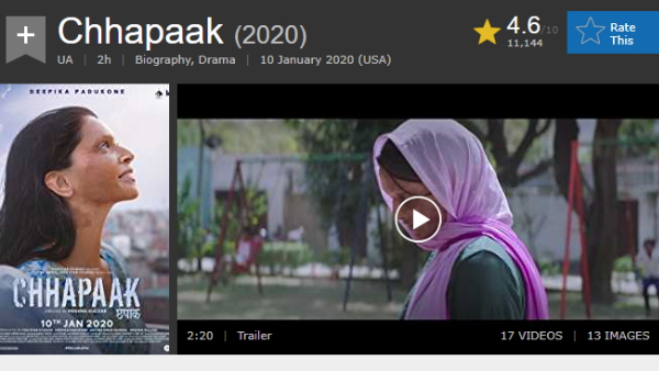 गौरतलब है कि जेएनयू हिंसा के बाद छात्रों से मिलने कैंपस पहुंची दीपिका पादुकोण को लेकर काफी विवाद हुआ। कई उनके सपोर्ट में आए तो कई लोगों ने दीपिका के इस फैसले को फिल्म छपाक का प्रमोशन बताया। दीपिका का विरोध करने के लिए उनकी फिल्म को निशाना बनाया गया जिसका असर अब फिल्म की कमाई और IMDb रेटिंग पर पड़ रहा है। मीडिया रिपोर्ट्स के मुताबिक फिल्म को IMDb पर 11000 मे से 6000 से ज्यादा वोट ऐसे मिले जिसमें ज्यादातर लोगों ने फिल्म के 1 स्टार दिया था।