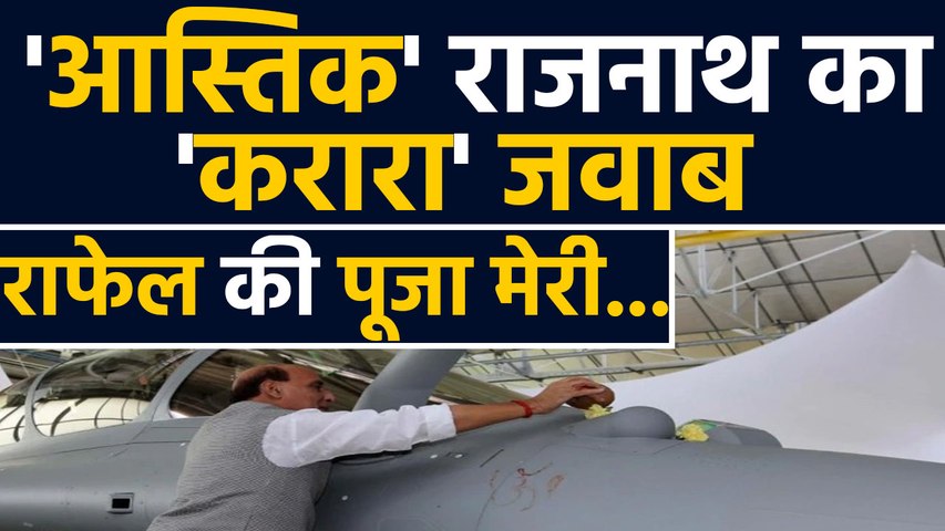 रक्षा मंत्री राजनाथ सिंह ने मंगलवार को करीब 30 मिनट कर राफेल में उड़ान भरने से पहले उसकी शस्त्र पूजा की थी। उन्होंने राफेल पर 'ऊं' लिखा और रक्षा सूत्र भी विमान पर बांधा था। राजनाथ सिंह ने फ्रांस के मेरीनेक एयरबेस में राफेल विमान को रिसीव किया था। राफेल रिसीव करने से पहले राजनाथ सिंह ने कहा कि भारतीय वायुसेना के लिए यह दिन ऐतिहासिक है।