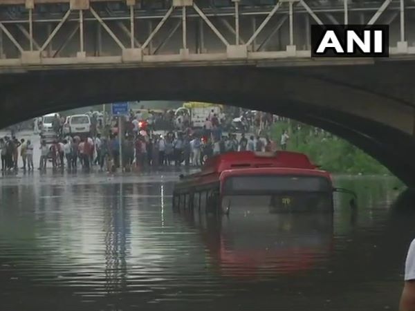 दिल्ली: बारिश के बाद कई इलाकों में जलजमाव, डूब गई डीटीसी की बस