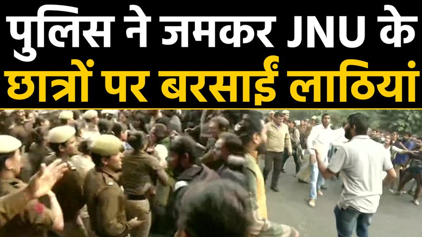 VIDEO: फीस बढ़ोतरी के खिलाफ राष्ट्रपति भवन की ओर मार्च कर रहे JNU छात्रों पर पुलिस ने किया लाठीचार्ज