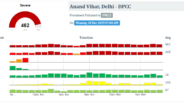 नई दिल्ली। एक तो पहले से ही देश का दिल ठंड की मार सह रहा है, ऊपर से बढ़ते प्रदूषण ने उसका सिरदर्द बढ़ा दिया है, दिल्ली-एनसीआर में वायु प्रदूषण खतरनाक स्तर पर है, आनंद विहार में सोमवार सुबह एयर क्वालिटी इंडेक्स (एक्यूआई) 462 और ओखला फेस 2 में (एक्यूआई) 494 दर्ज किया गया है, जो कि 'गंभीर श्रेणी' में आता है।