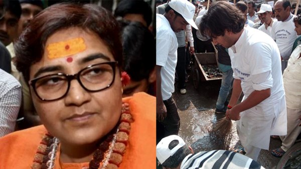 दिग्विजय के बेटे ने हाथ में झाड़ू उठाकर दिया साध्वी प्रज्ञा को जवाब