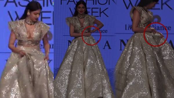 रैंप वॉक में अचानक खुला अभिनेत्री के लहंगे का हुक, झटसे पकड़ा, खुद को संभाला, वीडियो वायरल