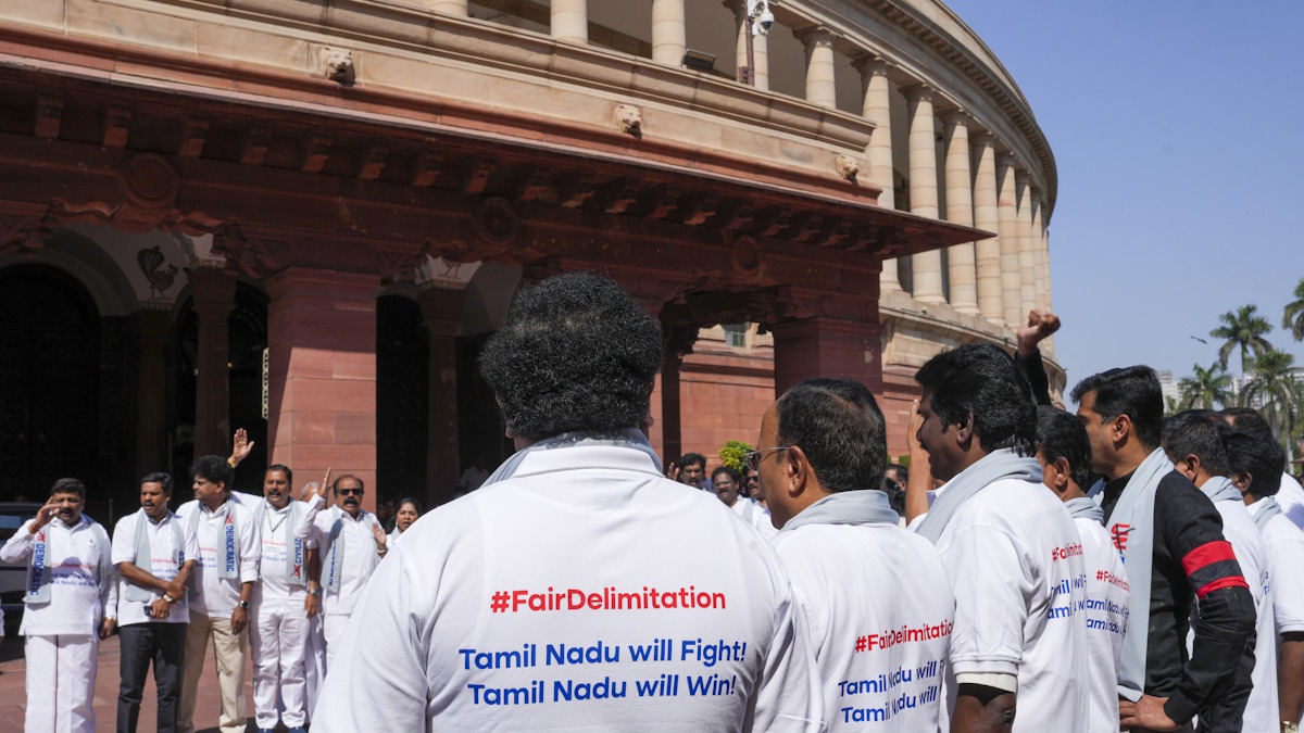 डीएमके सांसदों ने लोकसभा की सीटों के परिसीमन को लेकर विरोध जताया था, जिसके खिलाफ वे नारे लिखी हुई टी-शर्ट पहनकर सदन पहुंचे। इस प्रदर्शन पर लोकसभा अध्यक्ष ओम बिरला ने कड़ी आपत्ति जताई और उन्होंने कहा कि ऐसी टी-शर्ट पहनकर सदन में आना और नारेबाजी करना सही नहीं है। बिरला ने तत्काल कार्यवाही स्थगित करने का आदेश दिया, और कार्यवाही शुक्रवार तक के लिए स्थगित कर दी गई।