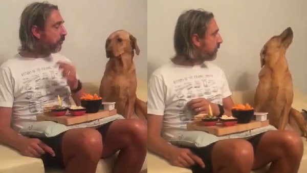सोशल मीडिया पर आए दिन वीडियो वायरल होते रहते हैं। जो काफी रोमांचित और आकर्षित भी होता है। सोशल मीडिया ऐसे वीडियो से भरा पड़ा है जो जानवरों की क्यूट हरकतों को बखूबी कैद करते हैं। इस बीच एक कुत्ते का अपने मालिक के साथ वीडियो वायरल हो रहा है। वीडियो में एक कुत्ता डिनर के टाइम अपने मालिक के भोजन को घूर रहा है। यह वीडियो लोगों को खूब पसंद आ रहा है।