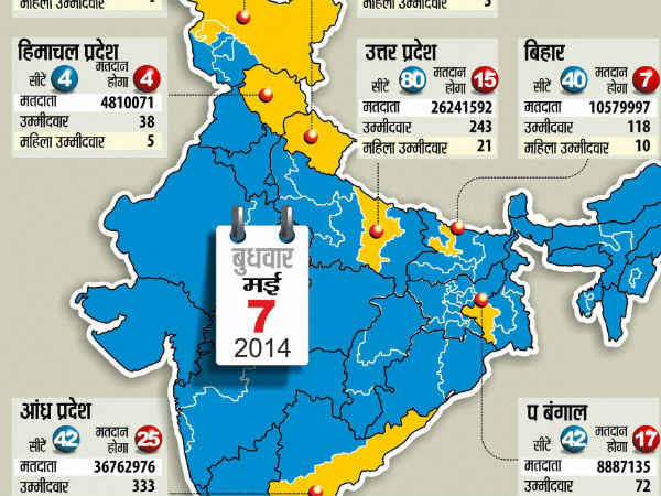 आठवें चरण में आंध्र प्रदेश की 25 सीटों, बिहार की सात सीटों, जम्मू एवं कश्मीर की दो सीटों, उत्तर प्रदेश की 15 सीटों और पश्चिम बंगाल की छह सीटों के साथ ही उत्तराखंड की सभी पांच सीटों एवं हिमाचल प्रदेश की सभी चार सीटों पर मतदान कराए जाएंगे।