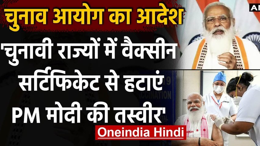 चुनाव आयोग ने स्वास्थ्य मंत्रालय से कहा है कि जिन राज्यों में चुनाव होने जा रहे हैं उन राज्यों में चुनाव आचार संहिता के नियमों के तहत कोरोना वायरस वैक्सीन प्रमाणपत्रों से प्रधानमंत्री नरेंद्र मोदी की फोटो हटाई जाए।