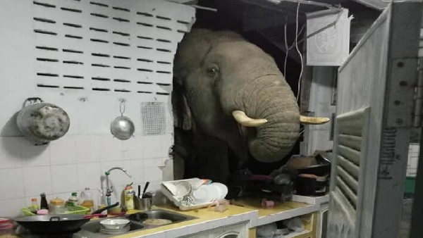 हिन जिले के निवासी रचादावन पुएंग प्रासोपोर्न ने किचन तक पहुंचे इस हाथी के फोटो-वीडियो फेसबुक पर शेयर किए हैं। उन्होंने बताया कि रात में अजीब आवाजें आने पर जब उन्होंने उठकर देखा तो किचन में हाथी था। हाथी ने उनके घर की दीवार में एक बड़ा सा छेद कर दिया है, और अपनी सूंड से किचन में खाने के लिए कुछ ढूंढ रहा था। महिला ने बताया कि, उसने कहा कि शनिवार को जब हाथी आया तो उसकी रसोई में खाना नहीं था, लेकिन हो सकता है कि वह अंदर रखे नमक को चुराने की कोशिश कर रहा हो।
