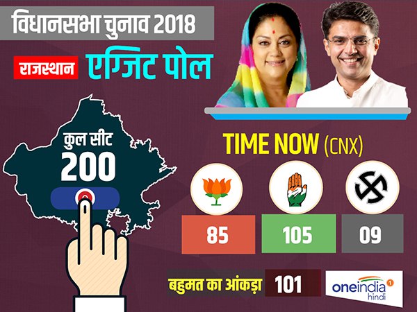 न्यूज 24-पेस मीडिया के सर्वे में राजस्थान में काग्रेंस की सरकार आ रही है। यहां 200 सीटों पर हुए चुनावों में से कांग्रेस 110 से 120 सीटें जीत रही है और आसानी से बहुमत के 101 के आंकड़े को पार कर रही है। भाजपा को 70 से 80 सीटें मिल रही हैं। अन्य को 5 से 15 तक सीटें मिल रही हैं।