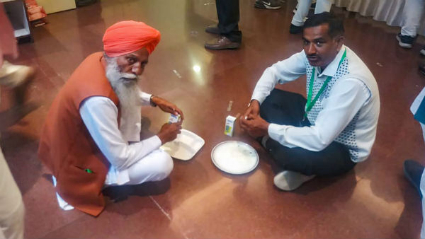 विज्ञान भवन में सरकार से मुलाकात करने गए किसानों ने सरकारी खाना खाने से किया इनकार,खुद की लाई रोटियां खाई