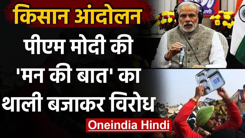 नई दिल्ली। PM Modi Mann Ki Baat प्रधानमंत्री नरेंद्र मोदी ने रविवार को 'मन की बात' कार्यक्रम में देश को संबोधित किया। एक तरफ पीएम मोदी रेडियो के माध्यम से देश को संबोधित कर रहे थे तो वहीं दूसरी तरफ दिल्ली बॉर्डर पर किसान उनके संबोधन के दौरान थाली बजाकर इसका विरोध कर रहे थे। पीएम मोदी ने जैसे ही 'मन की बात' कार्यक्रम में बोलना शुरू किया तो वैसे ही किसानों ने ताली और थाली बजाकर पीएम के संबोधन का विरोध करना शुरू कर दिया।