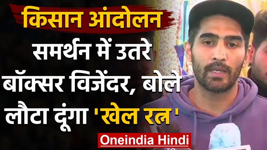 रविवार को बॉक्सर विजेंद्र सिंह किसानों के आंदोलन में शामिल हुए। विजेंद्र सिंह ने खेल रत्न पुरस्कार लौटाने की चेतावनी देते हुए कहा कि अगर सरकार काले कानून को वापस नहीं लेती है, तो मैं अपना राजीव गांधी खेल रत्न पुरस्कार लौटा दूंगा। विजेंद्र सिंह ने कहा, मैंने पंजाब में ट्रेनिंग ली और यहां की रोटी खाई है। आज जब वे यहां ठंड में हैं, मैं उनके भाई के रूप में आया हूं। हरियाणा के अन्य एथलीट भी आना चाहते थे, लेकिन उनके पास सरकारी नौकरियां हैं और वो मुसीबत पड़ सकते हैं। वे कहते हैं कि वे किसानों के साथ हैं। इससे पहले शनिवार को पंजाबी एक्टर और सिंगर दिलजीत दोसांझ भी किसानों के आंदोलन में शामिल हुए। उन्होंने कहा था, मैं सभी से गुजारिश करता हूं कि मुद्दों को ना भटकाया जाए। हाथ जोड़कर विनती करता हूं, सरकार से भी गुजारिश है कि हमारे किसान भाइयों की मांगों को मान लें। यहां सब शांतिपूर्ण तरीके से बैठे हैं कोई खून-खराबा नहीं हो रहा है।
