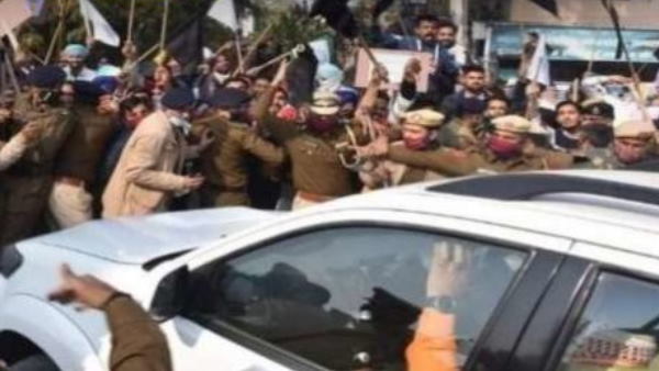 Farmers protest: किसानों ने हरियाणा सीएम खट्टर को दिखाए काले झंडे, नारेबाजी