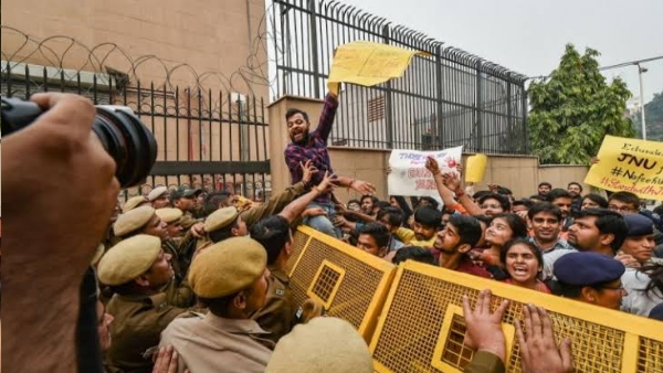 नई दिल्ली। देश के प्रतिष्ठित विश्वविद्यालय जेएनयू में बढ़ी फीस को लेकर छात्रों का विरोध प्रदर्शन अभी शांत नहीं हुआ है। शुक्रवार को छात्र एकबार फिर मानव संसाधन विकास मंत्रालय की तरफ कूच करने वाले थे लेकिन सिर्फ छात्र संघ की अध्यक्ष आइश घोष ने अपने कुछ साथियों के साथ मंत्रालय पहुंची। छात्रों के प्रदर्शन को देखते हुए मानव संसाधन विकास मंत्रालय को छावनी में तब्दील कर दिया गया था, बड़ी संख्या में बैरिगेटिंग की गई थी और छात्रों को रोकने के लिए पुलिस वाटर कैनन का भी इस्तेमाल करने वाली थी।